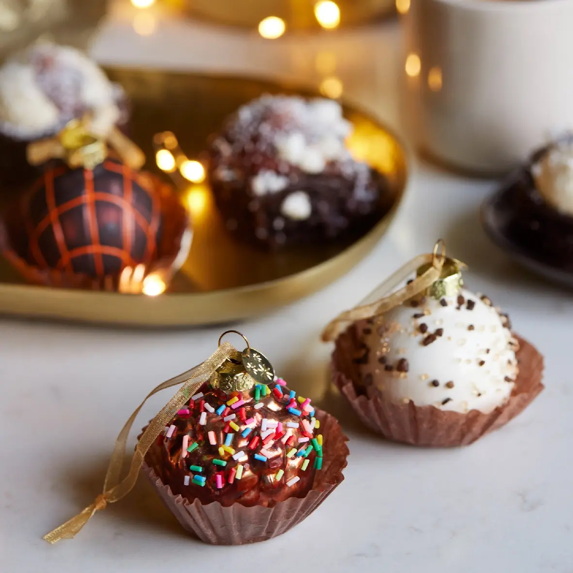 Božični stekleni okrasek sladica d5cm 1kos. Okraski v obliki sladice so čudovit in igriv dodatek k vaši božični dekoraciji. izdelani so iz kakovostnega stekla in ročno poslikani z drobnimi detajli, ki poskrbijo za realističen in privlačen videz. Ti okraski spominjajo na slastne sladice zato bodo na novoletni jelki ustvarili toplo in veselo vzdušje. So odlična izbira za vse, ki imate radi malo drugačne okraske. Poleg tega so lahko tudi simpatično darilo za ljubitelje slaščic. Naj vaše božično drevo zasije v stilu sladkih dobrot!