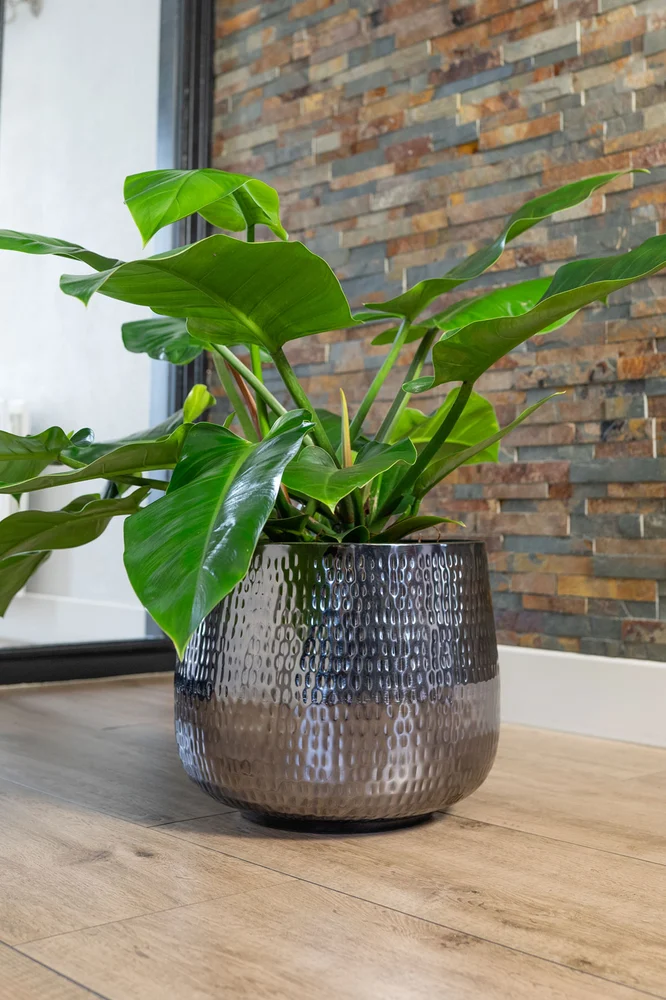 Cvetlični lonec Jenna siva sijaj D39H33 je ročno izdelan iz kvalitetne kovine. Je eleganten in šik, na voljo pa je v večih dimenzijah in tudi v obliki cvetlične vaze.