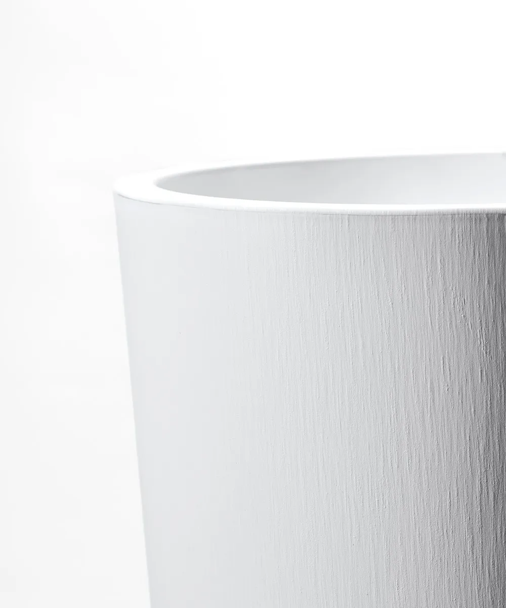 Reliefna površina in minimalistična oblika dajeta loncu eleganten videz, ki lepo dopolni sodobne vrtove, balkone ali notranje prostore.