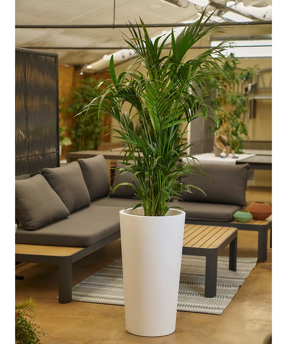 Okrasni lonec za rože Brooklyn 75 cm bele barve je primeren za uporabo v notranjih in zunanjih prostorih. Postavite ga lahko v dnevno sobo, hodnik, na balkon, teraso ali vrt. Nevtralna bela barva poudari naravno lepoto rastlin in se odlično ujema z različnimi slogi opreme.