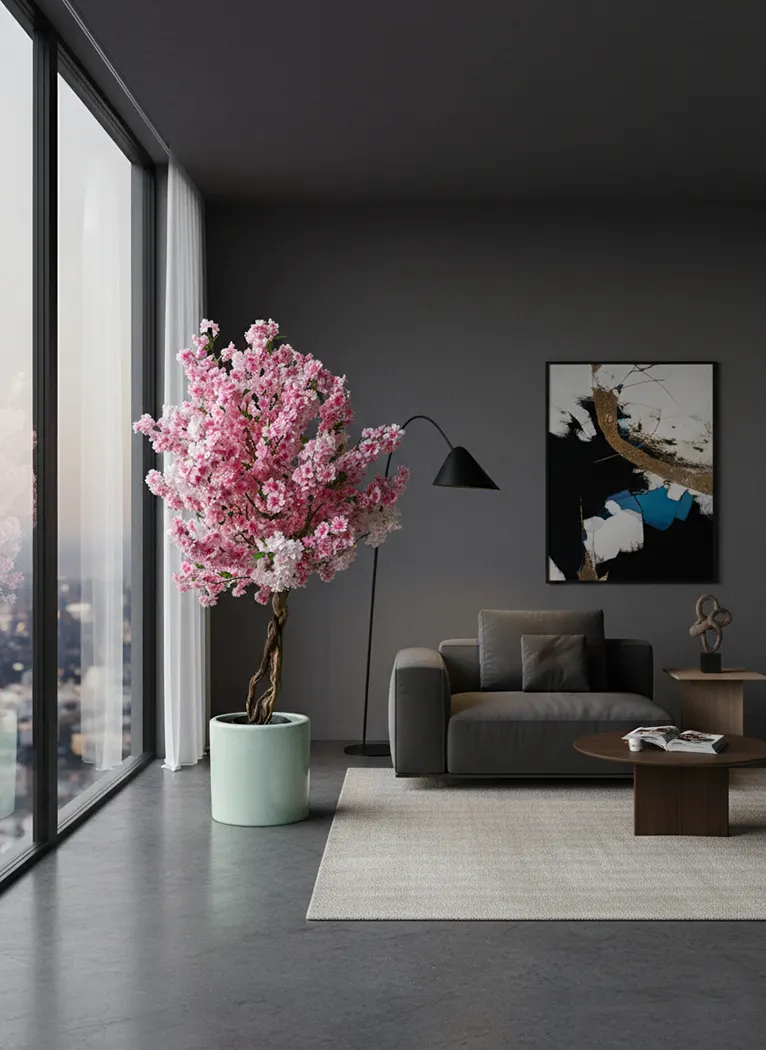 Z bogatimi cvetovi in skrbno oblikovano krošnjo, umetno drevo ustvarja močan vizualni učinek ter v prostor vnese toplino, eleganco in sodoben stil. Zaradi svoje višine 180 cm je idealno za večje prostore, kjer lahko zasije kot osrednji dekorativni element. Pozor: vsako drevo je nekoliko drugačno, saj je ročno izdelano na naravnih lesenih deblih.