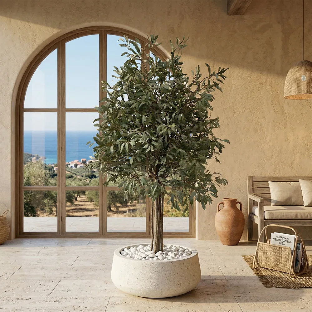 Velika prednost umetne oljke je, da ne potrebuje nobenega vzdrževanja. Ni zalivanja, ni odpadanja listov in ni potrebe po posebni svetlobi. Drevo bo skozi vse leto ohranilo popolno obliko in svež videz. To pomeni, da je idealna rešitev za prostore, kjer prave rastline težje uspevajo ali kjer želimo dolgoročno dekoracijo brez dodatnega dela.