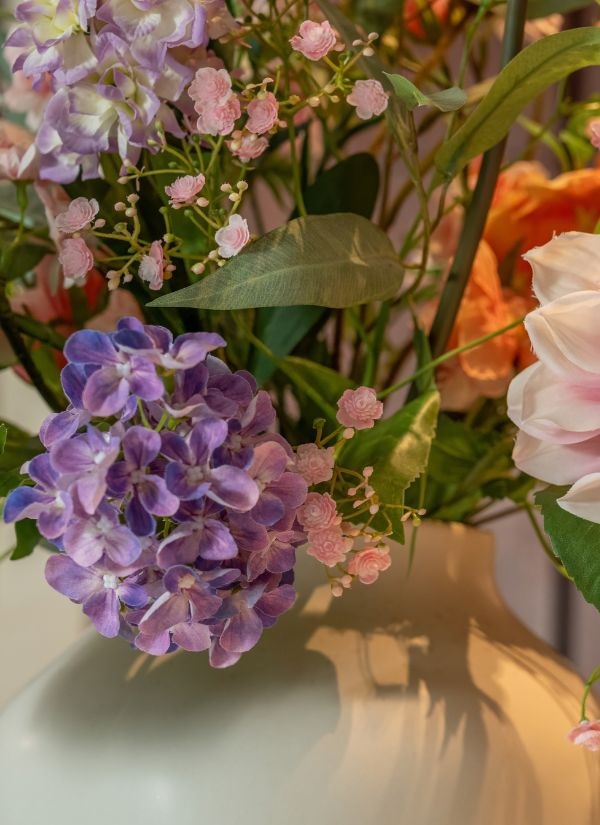 Cvetlični šopek Loft XL je popolna izbira za vse, ki si želijo impresiven cvetlični aranžma z nežnim, sodobnim in razkošnim videzom. Bogat šopek iz umetnega cvetja združuje harmonično prepletanje pastelnih odtenkov, različnih tekstur in skrbno izbranega zelenja, kar ustvari čudovit dekorativni poudarek v vsakem prostoru. Zaradi svoje velikosti in prefinjenega videza je cvetlični šopek Loft XL idealen za okrasitev dnevne sobe, jedilnice, recepcije, poslovnih prostorov ali posebnih dogodkov.